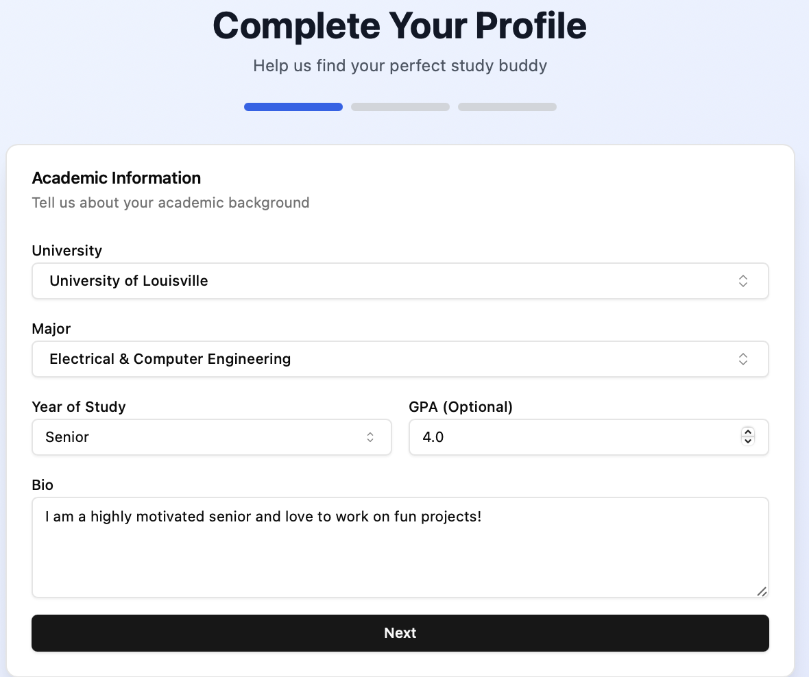 Add your major, classes, GPA, and study preferences to help us understand your needs